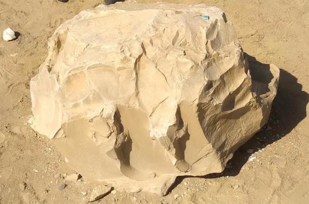 Crocodiles seen on a limestone block at the site of the Labyrinth at Hawara representing the power of the god Sobek. Credit: Andrew Collins