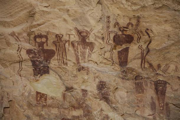 Anasazi pictograph panel in Sego Canyon, Utah, showing strange beings. (RLW / Adobe Stock)