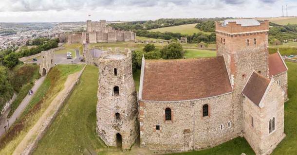 The Roman lighthouse, one of only three surviving Roman-era lighthouses, was converted to a belltower for the church at Dover Castle. (Alexey Fedorenko / Adobe Stock)