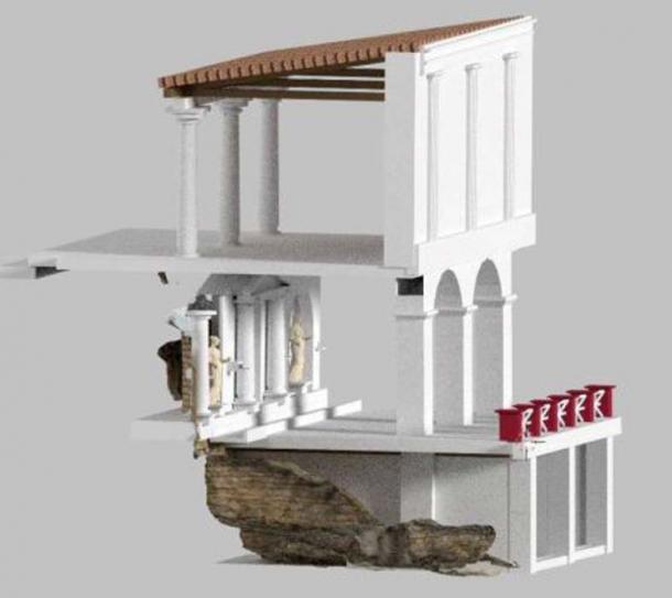 The back wall was decorated with niches and alcoves with statues, behind which there was a complex water system which fed into the fountain, an example of advanced Roman hydraulic engineering. Built in the 1st century AD, archaeologists have concluded that it was no longer in use by the 4th century AD.