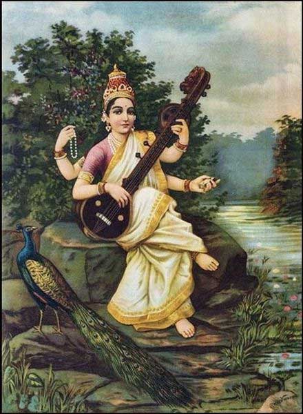 Goddess Saraswathi by Raja Ravi Varma (1848 – 1906) (Public Domain)