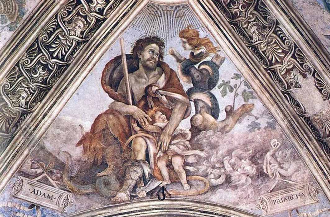 The Fall of Man showing the serpent in the Garden of Eden as a woman, by Cornelis van Haarlem (1592) (Public Domain)