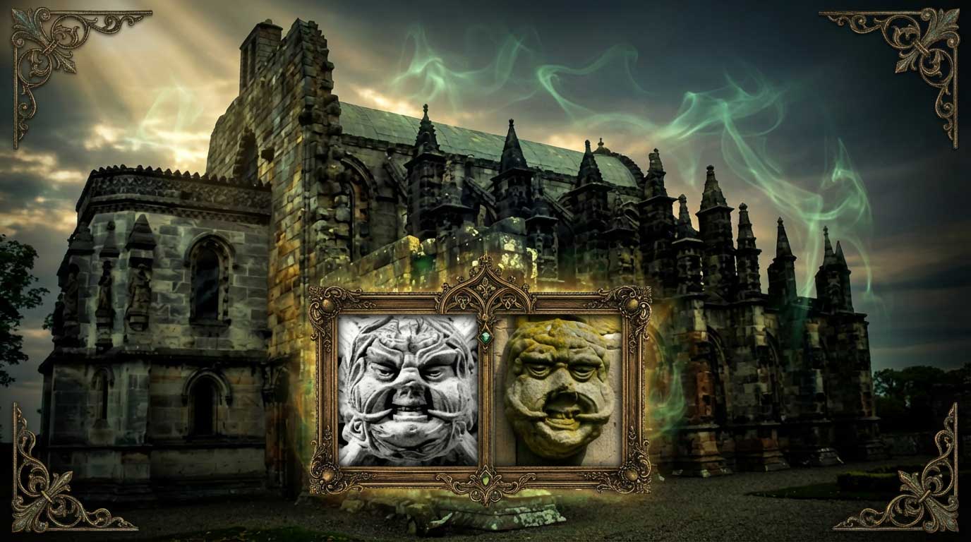 Stand before the central altar of Scotland's legendary Rosslyn Chapel and look up. A stone face grins down at you, leaves spilling from its mouth, but something's wrong with its smile. The front left tooth is missing.