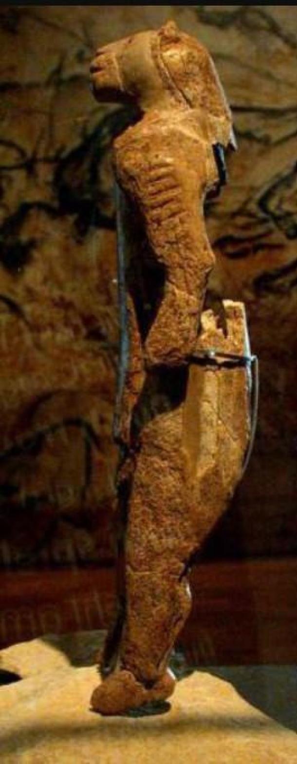 “Löwenmensch figurine, found in the Hohlenstein-Stadel cave of Germany's Swabian Alb and dated at 40,000 years old, is associated with the Aurignacian culture and is the oldest known anthropomorphic animal figurine in the world.” (Public Domain)