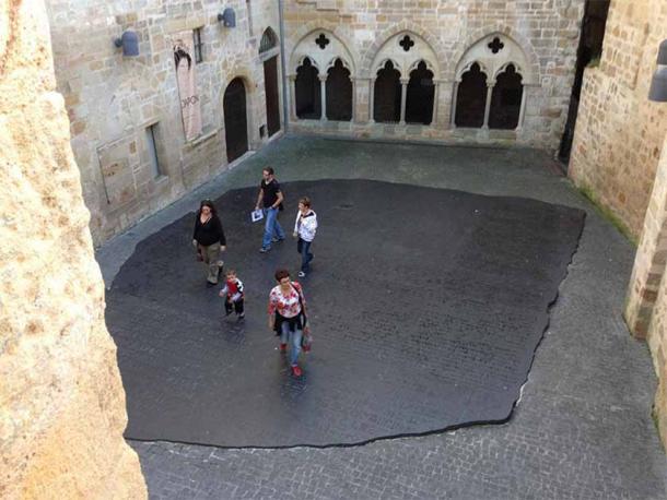 The monumental reproduction of the Rosetta stone by the American conceptual artist Joseph Kosuth in Figeac, Jean-François Champollion's birthplace, known as the Place des Écritures. (Bmclaughlin9 / CC BY-SA 3.0)