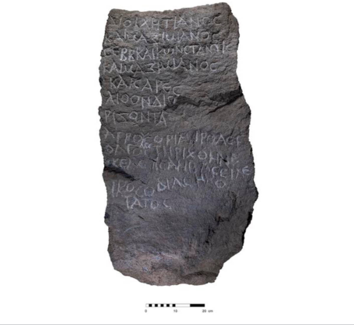 The find, which was deciphered by Dr. Avner Ecker and Prof. Uzi Leibner from the Hebrew University, is a boundary stone, originally inscribed to delineate agrarian borders between villages during the reign of the Roman Tetrarchy (a short-lived system instituted by the emperor Diocletian in 293 AD to govern the Roman Empire by dividing it between two emperors, the augusti, and their junior colleagues and designated successors, the caesares) and was found in secondary use in a Mamluk-period installation.