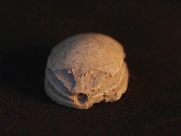 The back of the amulet, shaped like a scarab beetle. (Emil Aladjem/Israel Antiquities Authority).