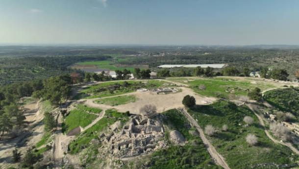 Aerial view of the Tel Azeka site, where Canaanite artifacts have been found. (Emil Aladjem/Israel Antiquties Authority).