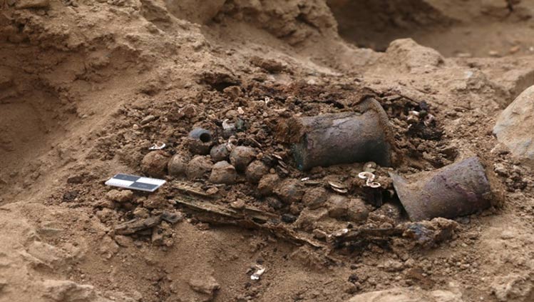 A team of researchers has uncovered the bone remains of 11 individuals at the Chan Chan Archaeological Complex, dated to 800 years old. These have been located specifically at the foot of the perimeter wall in the northern sector of the walled Utzh An complex, also known as the former Gran Chimú Palace. Alongside the remains, the team found ear muffs, Spondylus beads, and shells, which are often associated with high-ranking individuals from the Chimu period (900-1470 AD).
