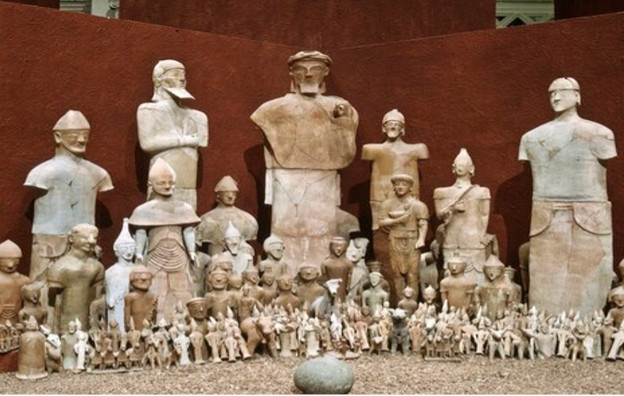 The sculptures were found in what appeared to be a shrine or sanctuary, suggesting that they held religious or votive significance. This site is notable for the vast array of artifacts unearthed, ranging from pottery to metal objects, but the terracotta figurines stand out due to their symbolic value and artistic craftsmanship.