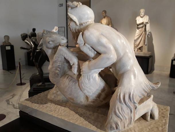 Pan coupling with a goat in a marble sculpture, dating back to between 1 BC and 1 AD, on display at the Archaeological Museum of Naples in the Secret Cabinet, alongside other classic erotic art deemed too explicit to be on public display by Francis I, King of Naples. (Simon Burchell / CC BY-SA 4.0)