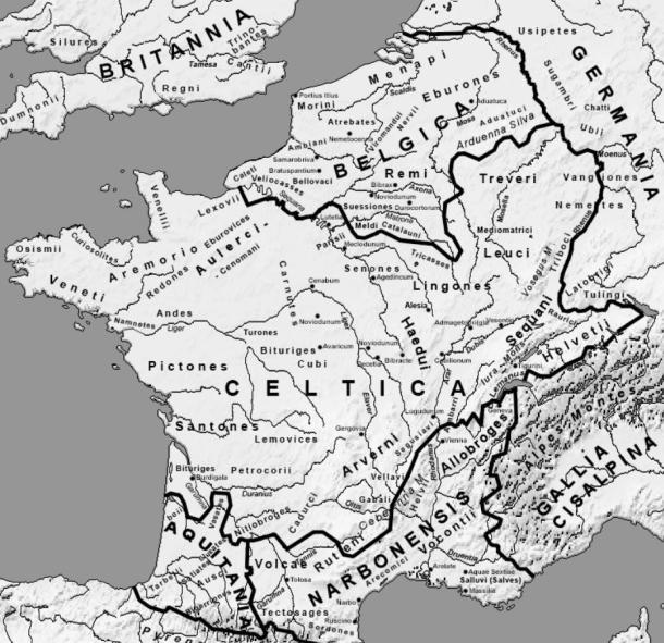 Map of Gaul in the 1st century BC, showing the relative positions of the Celtic tribes. (Feitscherg/CC BY-SA 3.0)