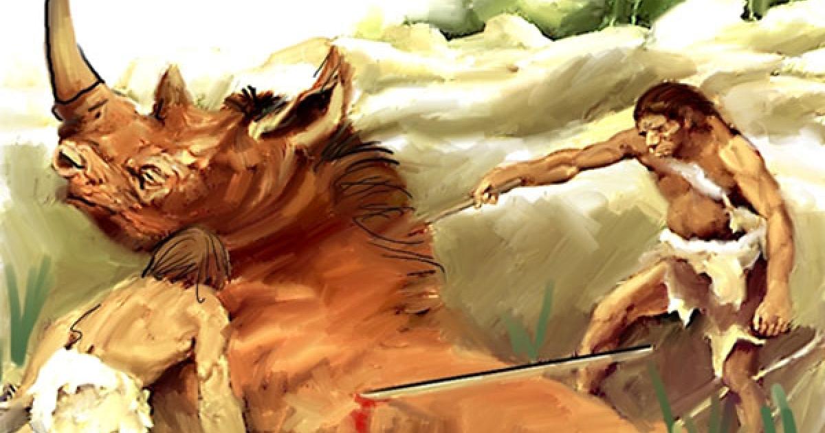 Featured image: Ancient humans hunting a large mammal. Image source.