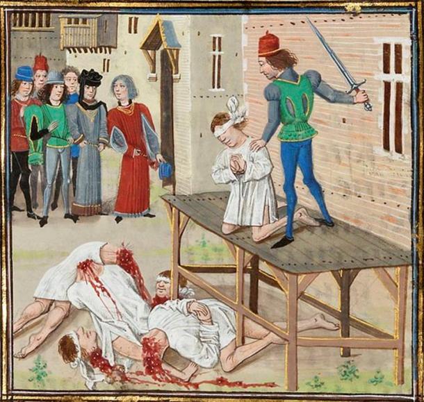Execution of Olivier IV de Clisson. Painting attributed to Loyset Liédet, Flemish illuminator (v.1420-v.1483) in the "Chronicles of Lord Jehan Froissart. (Public Domain)