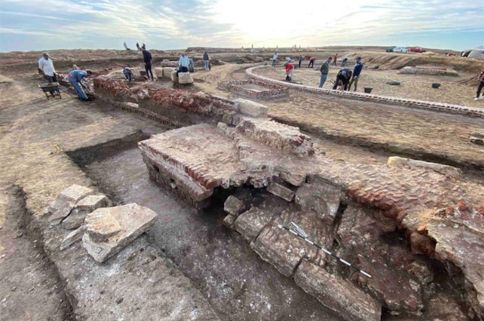 Side view of the circular basin at the newly discovered water temple in Pelusium.