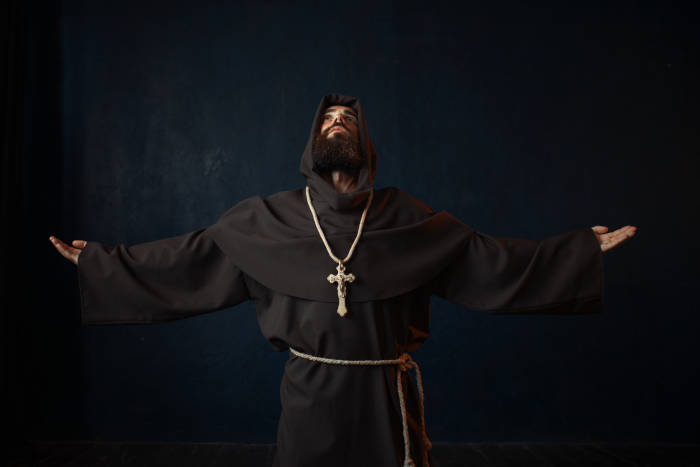 Top image: A Benedictine monk in black robe. Source: Nomad_Soul/Adobe Stock