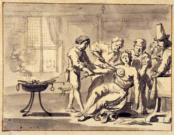 Top image: Common treatments for cancer included bloodletting. Source: Public domain
