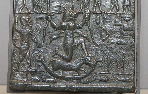 Bottom part of the plaque depicts the demon Lamashtu and her husband Pazuzu. (Public Domain)