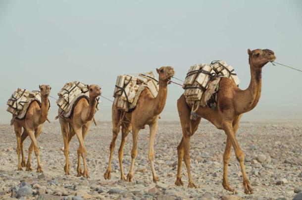 The salt, which was in the form of blocks, would then be loaded onto the backs of camels, and be transported to the south, where they were traded for gold.