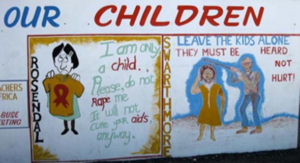 A street sign in South Africa, appealing to adults not to rape virgin children in the belief that it will cure them of AIDS. (John / CC BY-SA 2.0)