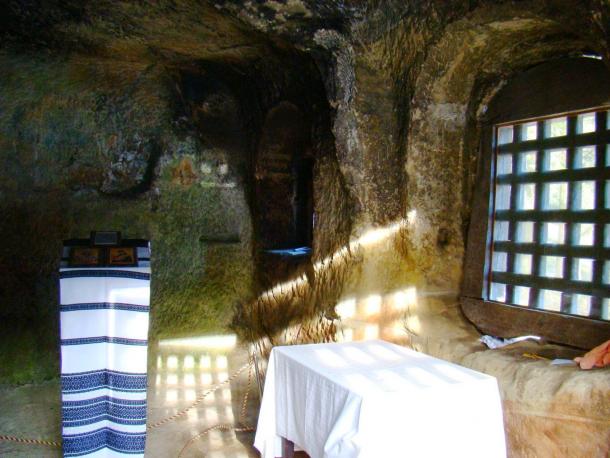 Interior of the hermit’s rock home. (Image: johnsanidopoulos)