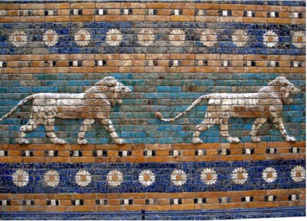 Details of the lions and flowers of the Ishtar Gate, Pergamon Museum, Berlin. (Josep Ranalias/CC BY-SA 3.0).