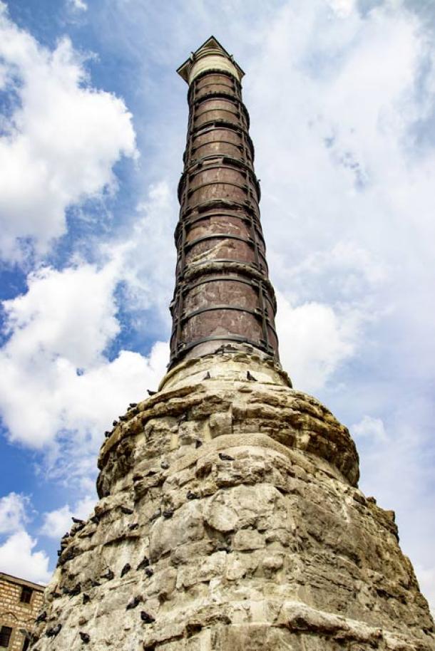 Today, the column is 35 meters (114.8 feet) tall, but in ancient times it was 15 meters (49.2 feet) taller and ended with an impressive statue of the emperor. The column was decorated with pagan symbolism supported by some Christian decoration.