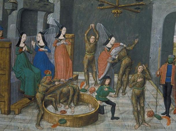 Depiction of the aftermath of the Ball of the Burning Men (‘Bal des Ardents’). King Charles is tended to by Joan De Berry with her dress putting out the fire. Sieur de Nantouillet jumps into the vat of water, while the others desperately try to put the fire out. (Jean Froissart / Public domain)
