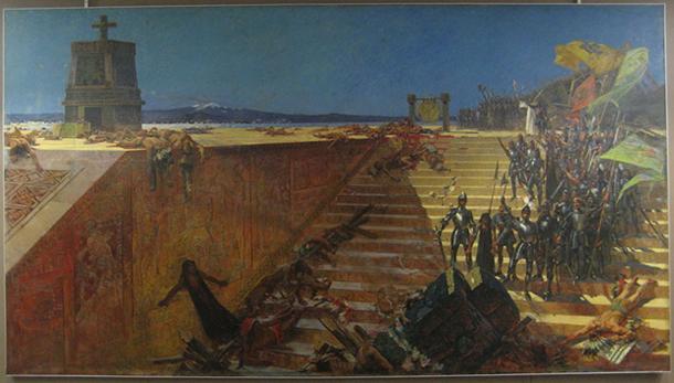 "The Last Days of Tenochtitlan—Conquest of Mexico by Cortez" — 1899 painting by William de Leftwich Dodge. (Public Domain)