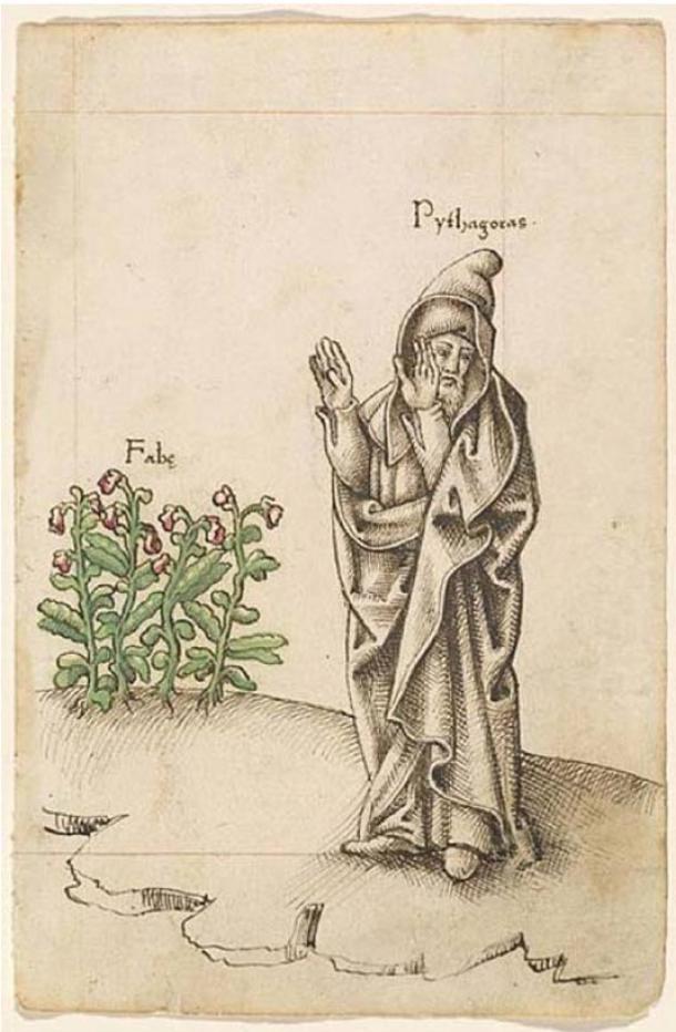 French manuscript from 1512/1514, showing Pythagoras turning his face away from fava beans in revulsion. (Public Domain)