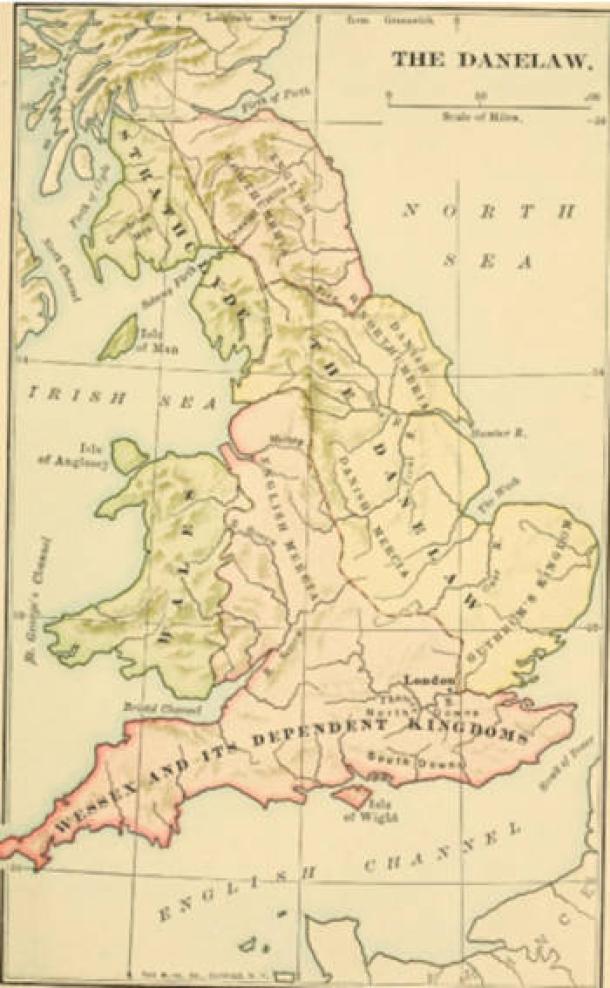 Map showing the Danelaw and Anglo-Saxon lands. (Public Domain)