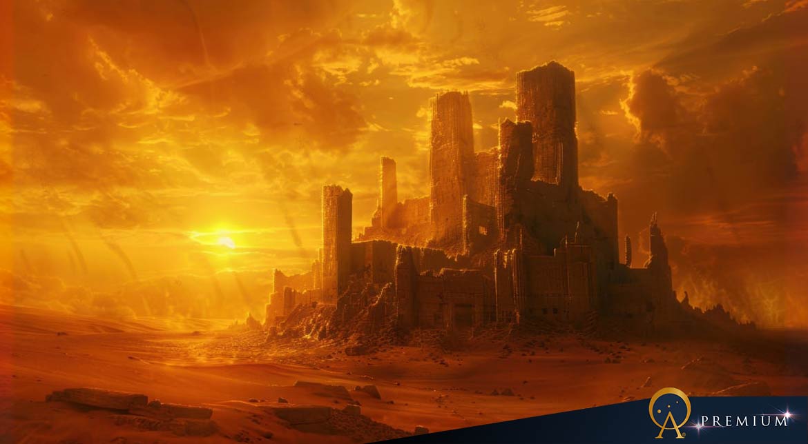 Wandering through endless dunes, Keila quickly ran out of resources, growing tired and thirsty. Feeling utterly alone and defeated, he collapsed, ready to face whatever was in store for him. However, in another twist of fate, several men in the distance saw Keila and rushed to his rescue. They helped the poor man and guided him to safety. Though weakened and dazed, Keila noticed these oddly tall men were fair-skinned with striking blue eyes. They carried long swords that ran straight, unlike the curved scimitars commonly used. Eventually, they came to an opening between two mountains, where an ornate bird stood atop an elaborate gate.