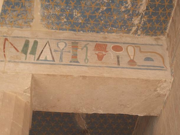 The djed symbol seen in hieroglyphic inscription at Deir el-Bahri. (Kyera Giannini / CC BY 2.0)