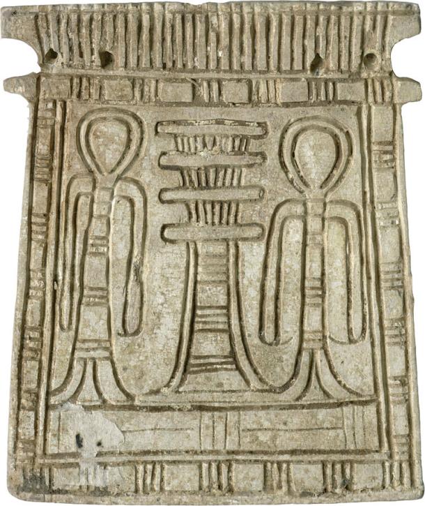 A djed pillar (center) on a glazed steatite pectoral (1070 – 703 BC). (Public Domain)
