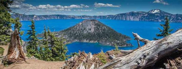 Wizard Island in Crater Lake National Park in the Oregon Cascade Range. (Rex Wholster / Adobe Stock)