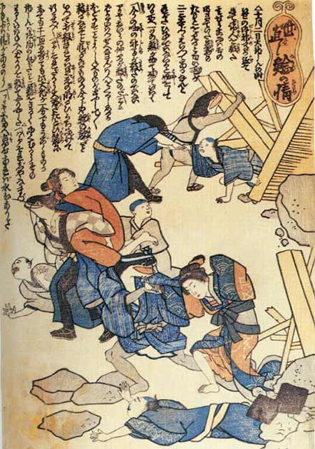 After the mid-19th century, Namazu also became increasingly associated with political commentary and criticism of the government in Japan. Part of the reason for this is the aftermath of the Ansei Edo earthquake of 1855.