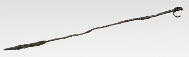 The Viking seeress’s cooking spit. The spit was already slightly bent when it was placed in the burial. (National Museum Denmark)