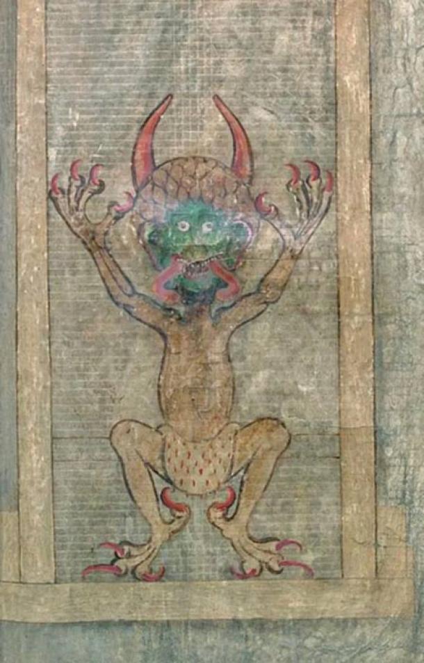 Enhanced version of the image of the Devil from the Codex Gigas. (RootOfAllLight/CC BY-SA 4.0).