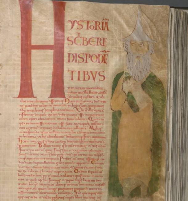 Page of the Codex Gigas which may represent Flavius Josephus. This is the only portrait of a person in the codex. (National Library of Sweden)