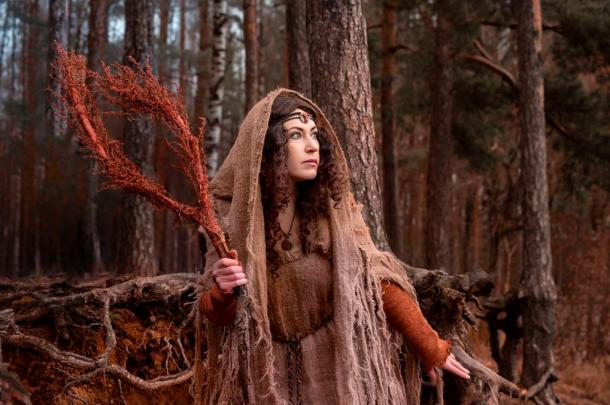 Top image: Women shaman of Ireland in trance - magic rotates the leaves. Source: kharchenkoirina / Adobe
