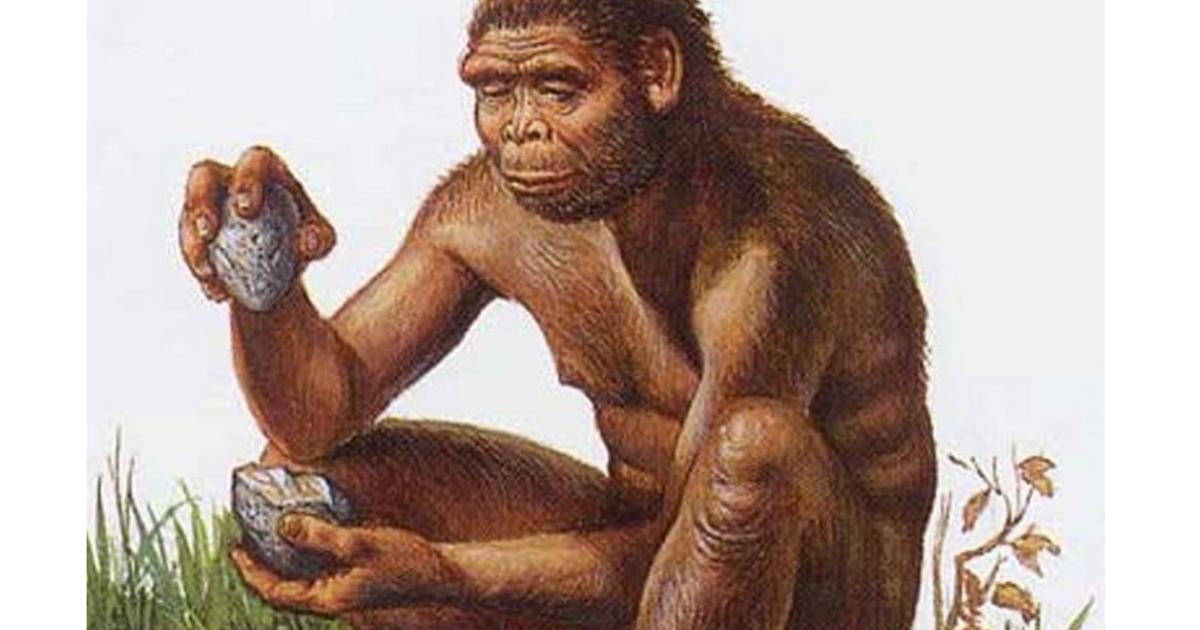 Featured Image: Illustration of the species Homo habilis (genus Homo between 2.1 and 1.5 million years ago) shaping a stone tool by “knapping”. Representational image. Credit: Vassar.edu