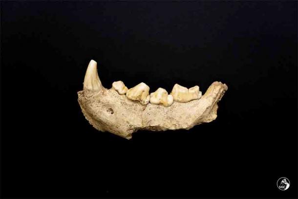 This image released by the Italian Culture Ministry shows a fossil jaw that was discovered in the cave southeast of Rome, shedding new light on how the Italian peninsula was populated and under what environmental conditions. (Emanuele Antonio Minerva / Italian Ministry of Culture)