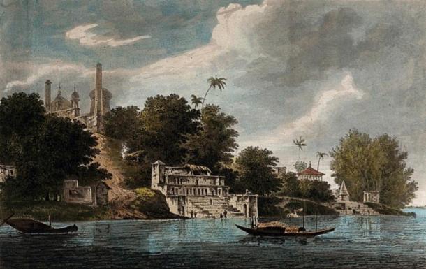 The Babri Mosque, upper left, in the 18th century. From William Hodges' ‘Select Views in India in the Years 1780–1783.’ (Public Domain)
