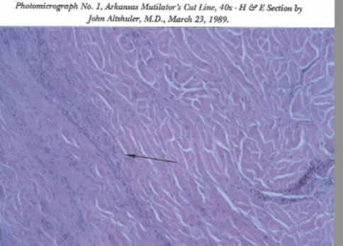 Tissue analysis has shown that a high temperature precision tool did the cut and the cut took place quickly maybe in a 2 second period. That was the same for all tissue samples from multiple cases.