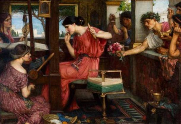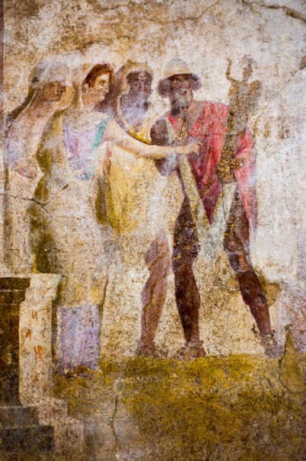 Antique fresco from Pompeii of Odysseus (pileus hat) carrying off the palladion from Troy, with the help of Diomedes, against the resistance of Cassandra and other Trojans. (ArchaiOptix/CC BY-SA 4.0)