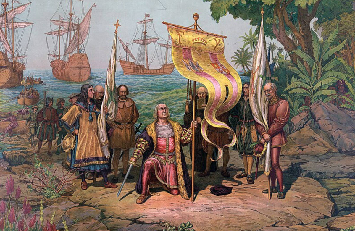Top image: Christopher Columbus taking possession of the lands of the New World on behalf of Spain after landing on the island of Hispaniola, 1492.