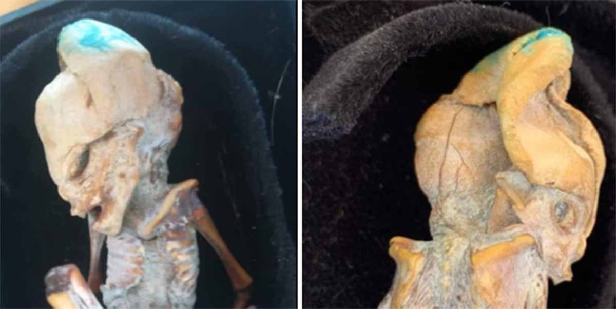 The alleged “alien” has what appears to be an elongated skull. This, married with its slanted eyes and 10 ribs on each side of the body, compared to a human's typical 12, has led to claims of extraterrestrial origins. But rather than having been unearthed on a solid archaeological discovery, the reporter who broke the story received the first images “anonymously by Whatsapp.” Permission to face-palm granted.