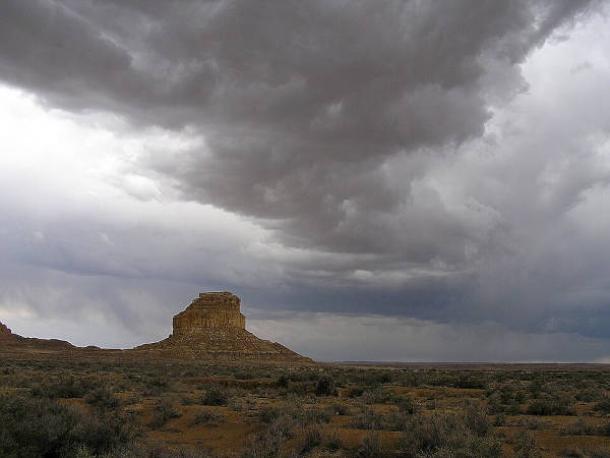 An image of Fajada Butte and the Fajada Gap, near the southwestern rim of Chaco Canyon. (Chaco Canyon National Historic Park/Public Domain).