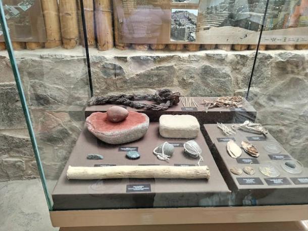 Stone tools and other assorted artifacts left behind by the Norte Chico people in the city of Caral. (Mayumitorres/CC BY-SA 4.0).