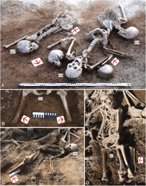 Different views of broken and dismembered skeletons unearthed in 2009 during excavations near Great Wall. (Kovalev, et. al/Journal of Archaeological Science).